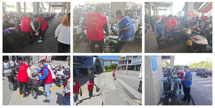 參與活動(dòng)的黨員們積極參與到活動(dòng)中來(lái):面對(duì)人行道上出現(xiàn)的垃圾,他們不怕臟累,一次次耐心撿起,將煙頭、紙團(tuán)等小型垃圾收集至垃圾袋中,大型垃圾則直接丟棄至就近垃圾桶;面對(duì)停放雜亂的電動(dòng)車(chē),大家則互相配合,合作整理,并引導(dǎo)正在停車(chē)的車(chē)主有序停放,讓原本略顯雜亂的停車(chē)區(qū)很快變得井井有條起來(lái)。