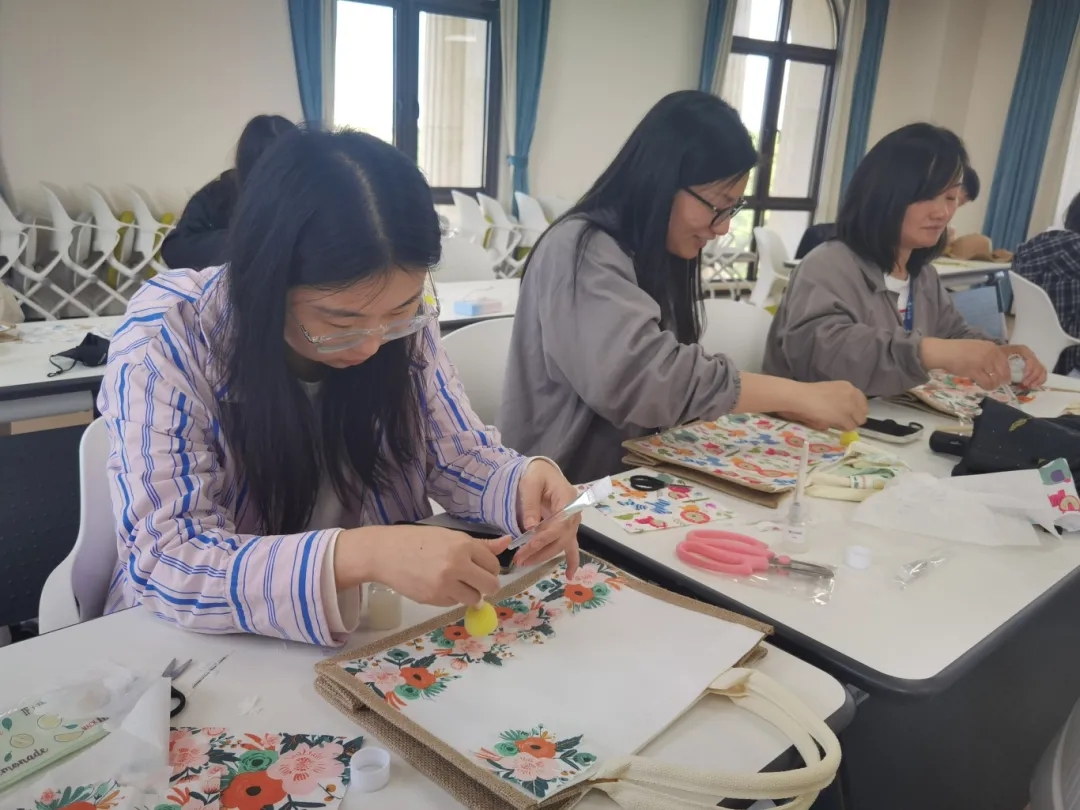 原本平平無奇的草帽及包包,經(jīng)過大家用心的DIY,變得精美又獨特!有員工說:“感謝海陵的關(guān)心,給我們安排這么有意義的活動,鍛煉了我的手工哈哈!”也有員工說:“身邊越是親近的人,往往我們越容易忽略,感謝公司組織的這次母親節(jié)活動?!被顒釉谝黄瑲g聲笑語中完成,大家爭先展示自己的作品,紛紛打卡拍照。