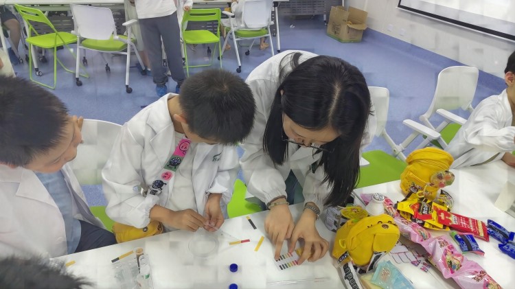 2. 淀粉遇碘變藍(lán)色:孩子們見證了淀粉溶液在加入碘后顏色的變化,了解到這一化學(xué)反應(yīng)的奇妙,并被鼓勵在家中嘗試類似的小實(shí)驗(yàn)。