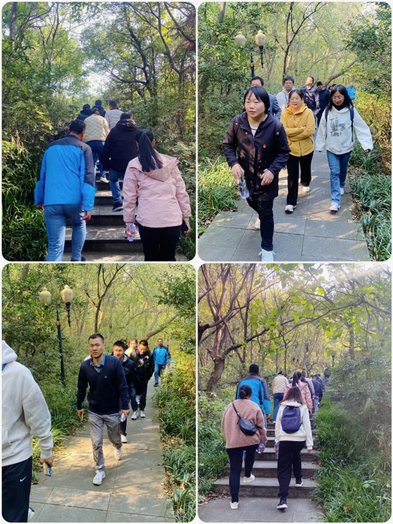 海陵選擇了更具挑戰(zhàn)性的路線。深林靜謐,空氣清新,眾人沿著陡峭的臺(tái)階上行。起先,大家信心滿懷,激情高昂。然而,隨著腳步的邁進(jìn),肌肉酸痛和呼吸急促的感覺(jué)逐漸襲來(lái),大家逐漸感受到了身體的疲憊和意志的挑戰(zhàn)。此時(shí),有的同事氣喘吁吁,有的同事步履蹣跚。