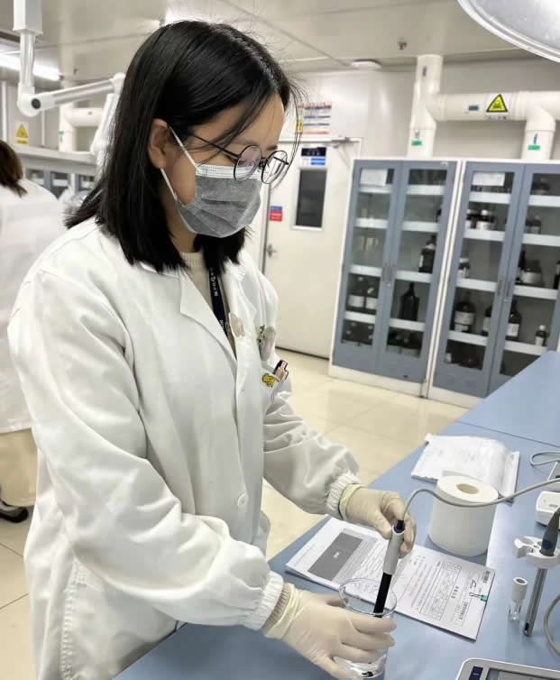 謝茜2019年4月入職實(shí)習(xí),實(shí)習(xí)后一直留在海陵,主要負(fù)責(zé)原輔料包材理化方面檢測(cè)工作?!八粩嗵嵘晕?,保證物料檢驗(yàn)的及時(shí)性,對(duì)工作永不放松,以最高的熱情完成每一件事?!蓖氯绱嗽u(píng)價(jià)她。