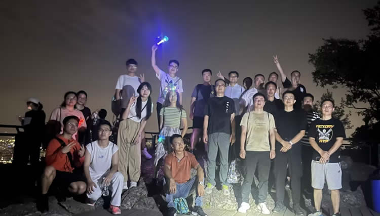 處喧久忘靜,臨曠始懷真。參與登山的小伙伴們順利登頂后,在夜幕四合中眺望山下燈火璀璨的金陵城,大家都欣喜愉悅、有所感悟。