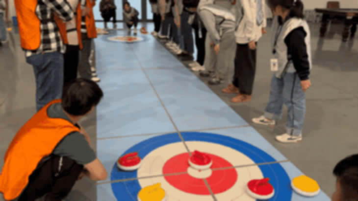 最后來(lái)到了大家期待已久的“冰壺大作戰(zhàn)”。旱地冰壺的投擲環(huán)節(jié),既是技術(shù),也是戰(zhàn)術(shù),令人驚喜的是,各隊(duì)很快就擬定了“作戰(zhàn)方針”,隨著賽程進(jìn)展,拉引擊球(Draw)、防衛(wèi)擊球(Guard)、敲退擊球(Freeze)、晉升擊球(Promote)、射擊移位擲球(HitandRoll)等變換自如。大家在比賽中時(shí)而屏息凝神,時(shí)而拍掌喝彩,將團(tuán)建活動(dòng)推向了高潮。